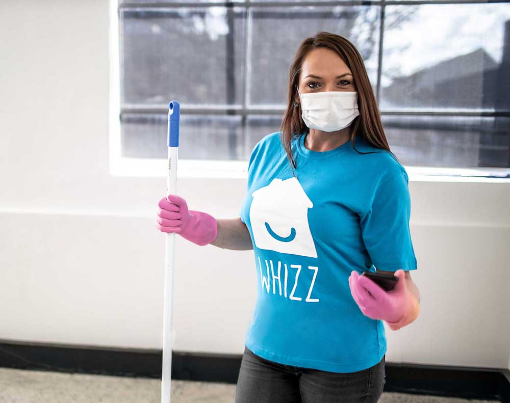 Whizz Professionals are instructed to use new cleaning cloths, masks and disinfect additional cleaning equipment before each clean.